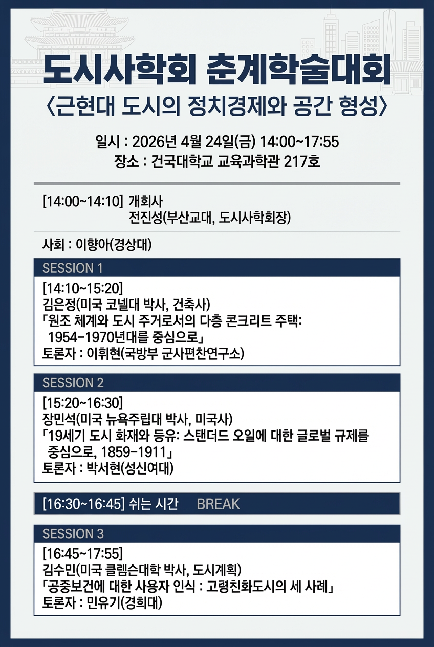 2026년 도시사학회의 한 해를 시작하는 춘계학술회의를 준비하였습니다.